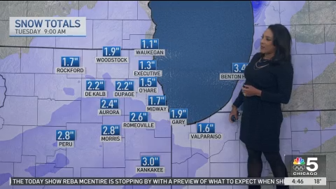 By about 12 p.m. Monday, snow was expected to move in from the west and spread east. By 3 p.m., the snow will be widespread, NBC 5 Storm Team Meteorologist Alicia Roman said, with the entire Chicago area expected to be snow-covered later Monday afternoon and hazardous conditions for the rush hour drive.